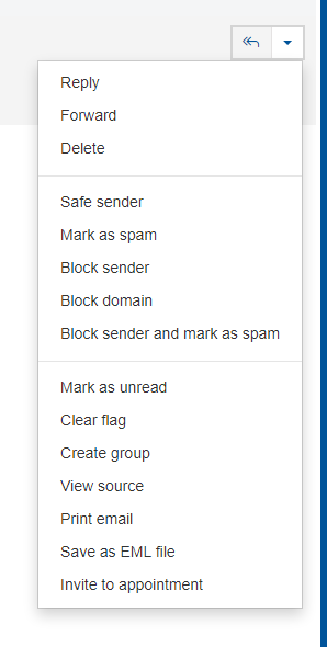 You can easily download an email to your desktop. Simply double click on the message you wish to download, click the down arrow on the right hand side, and then select Save as EML file.