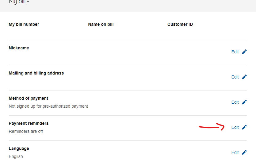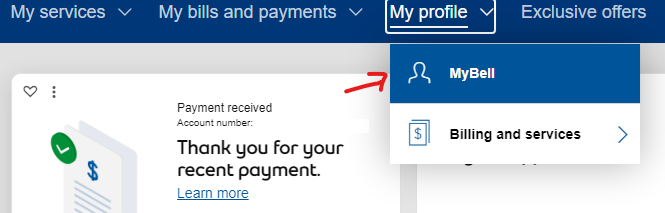 Hi: The option (which doesn't work, at least for me) is under your Bill Payment Profile. I agree; not very reassuring at all that Bell can't resolve this.