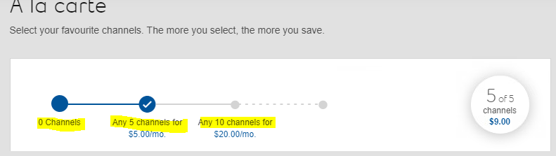 3) Are there options to select a certain number of a la carte channels eg 5, 10 etc ? If so, how much ?