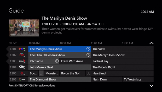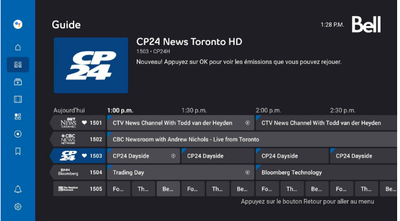 Si vous disposez du récepteur VIP7802, vous pouvez désormais identifier les chaînes dont le contenu peut être redémarré en recherchant le chevron (onglet de chaîne avec flèche) comme indiqué sur la photo ci-dessous. Il suffit d'aller dans l'onglet de la chaîne pour accéder aux émissions qui ont déjà été diffusées au cours des 30 dernières heures, comme indiqué dans la capture d'écran ci-dessous.