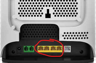 The other end of the ethernet cord would plug into one of the 4 ports on the back of your modem (as circled in red).